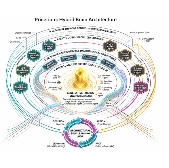 A next-generation pricing platform that combines data, models, and AI agents into a single, manageable loop of “decision → action → fact → learning.”