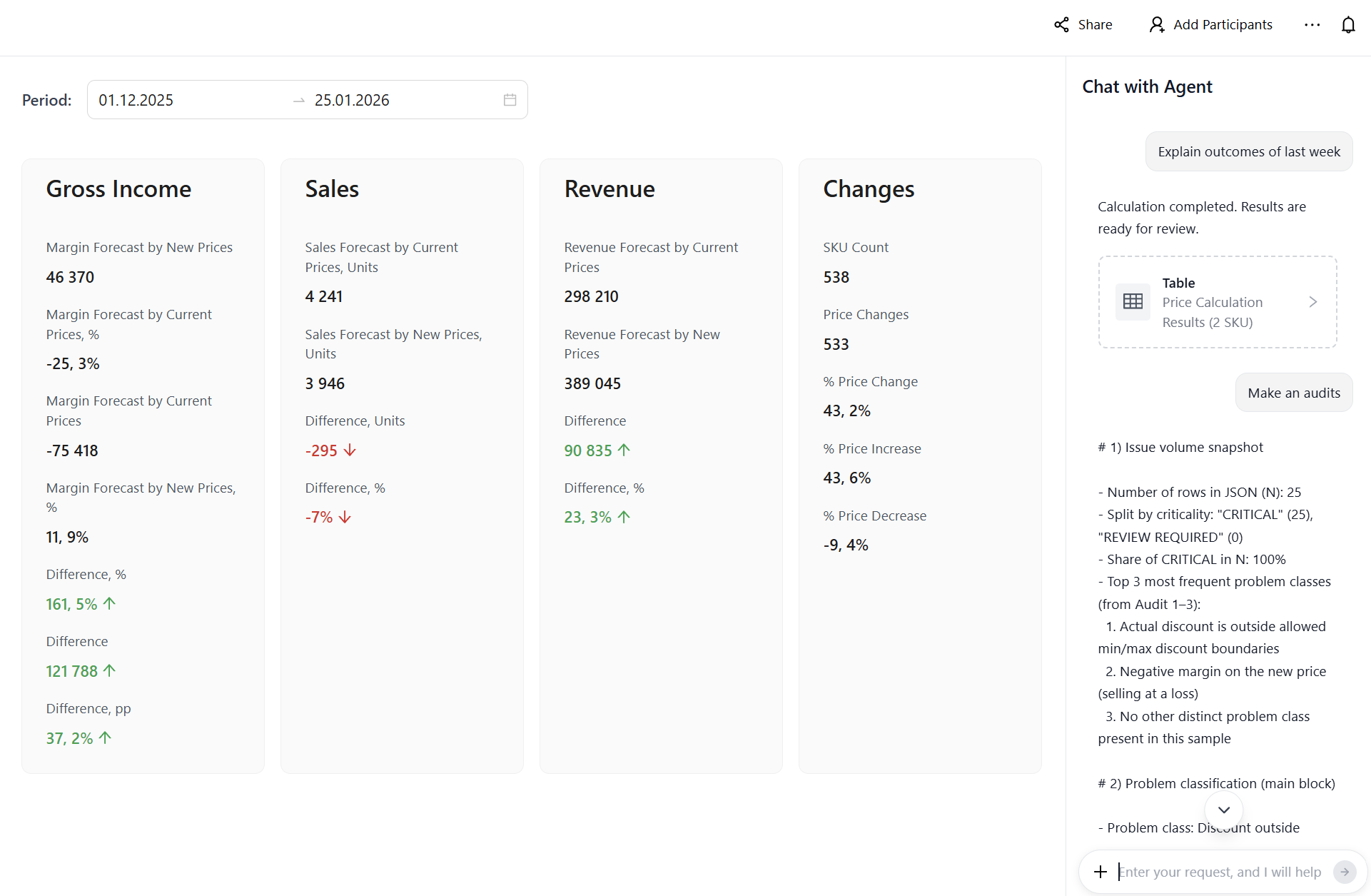 AI pricing agents (Pricing Copilot)Natural language dialogue assistants on top of all models and data.